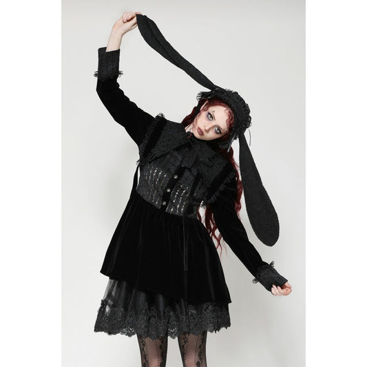 Dark in Love Elowen Black Gothic Lolita Rabbit Ear Bonnet in Rose Lace